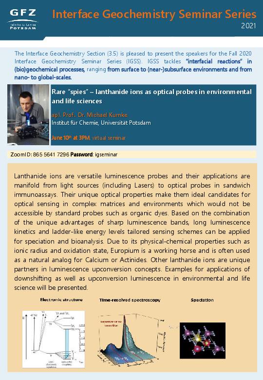 Interface Geochemistry Seminar: apl. Prof. Dr. Michael Kumke on: ““Rare “spies” – lanthanide ions as optical probes in environmental and life sciences”